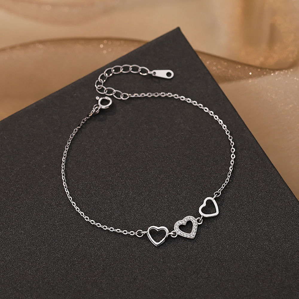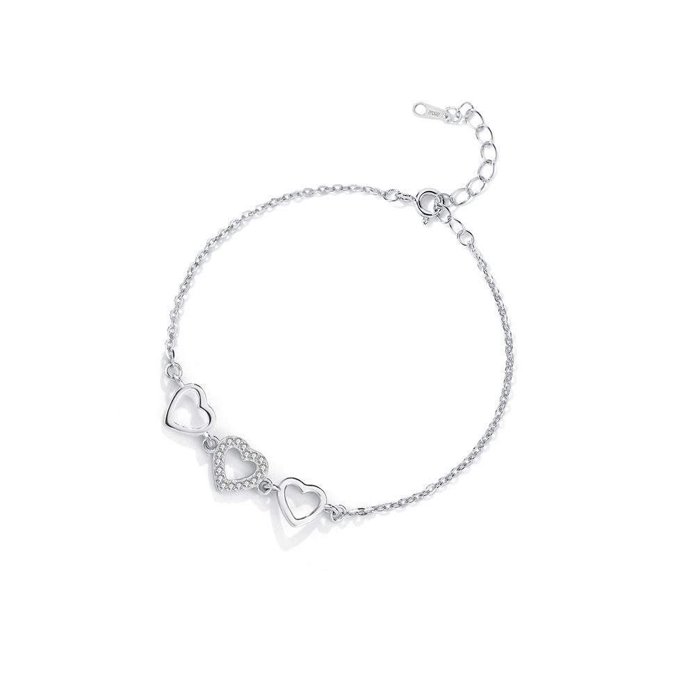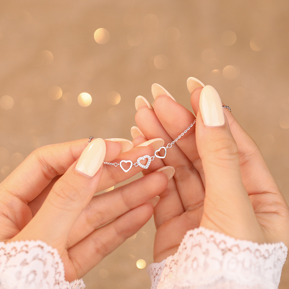 Три сърца, вплетени в деликатна сребърна верижка, създават усещане за баланс между емоция, блясък и елегантност. „Свързаност“ е гривна, която символизира близостта между сърца – изящна и значима